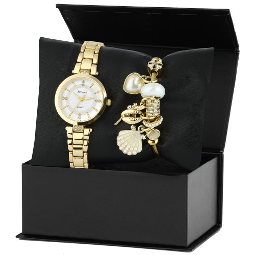 Forentina Gold Metal Bayan Kol Saati İncili İstiridye Bileklik Kombin Set PS3923