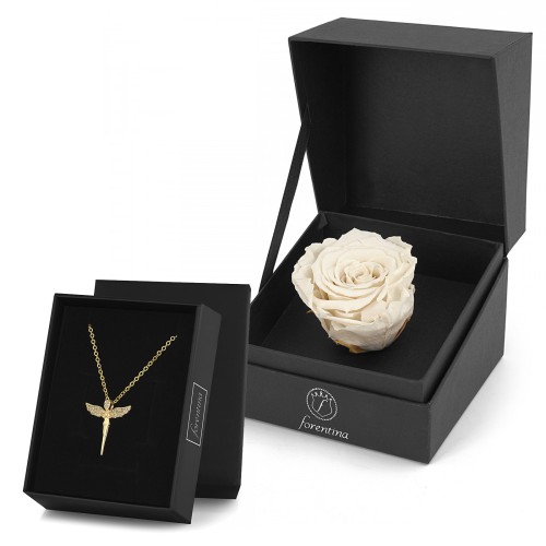 Forentina Altın Kaplama Melek Kolye & Beyaz Solmayan Gül Hediye Set PS2753
