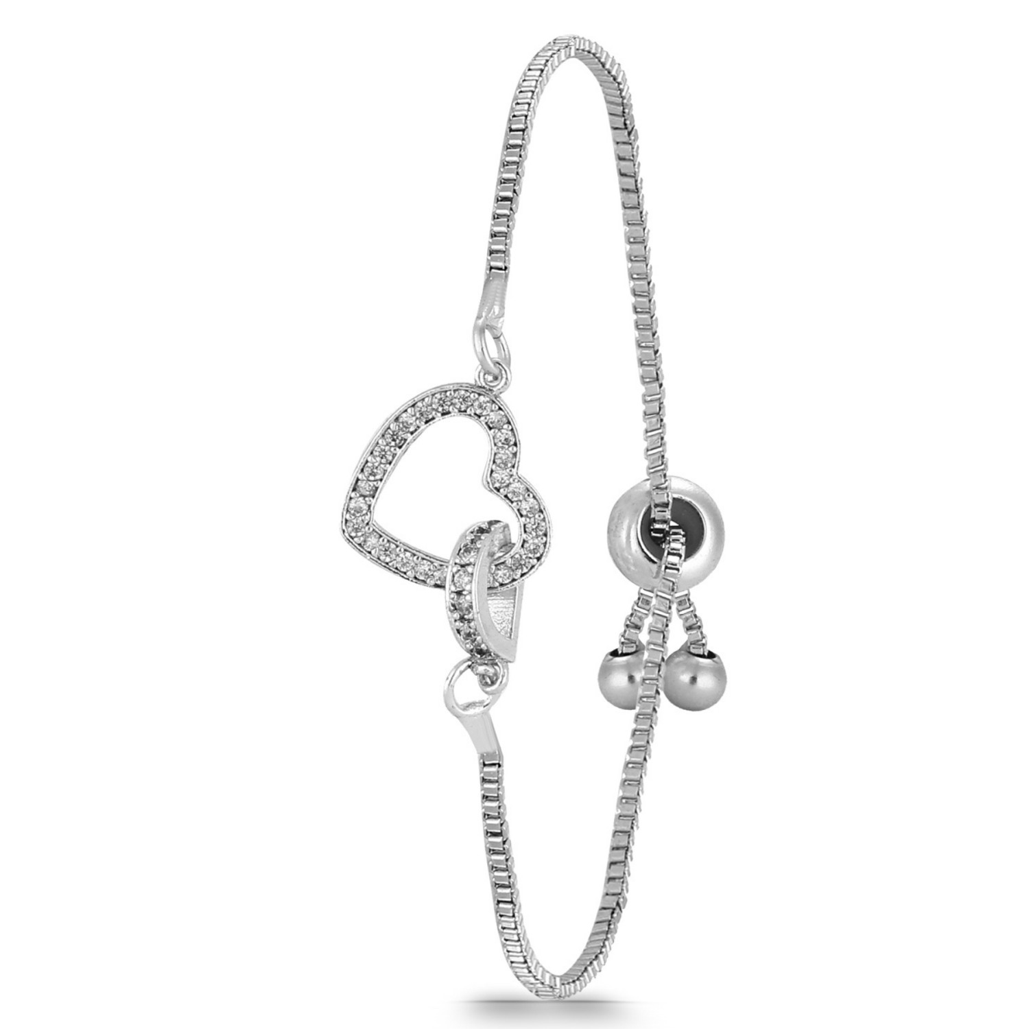 Forentina Bayan Gümüş Kaplama Kalpli Asansör Bileklik PS4170