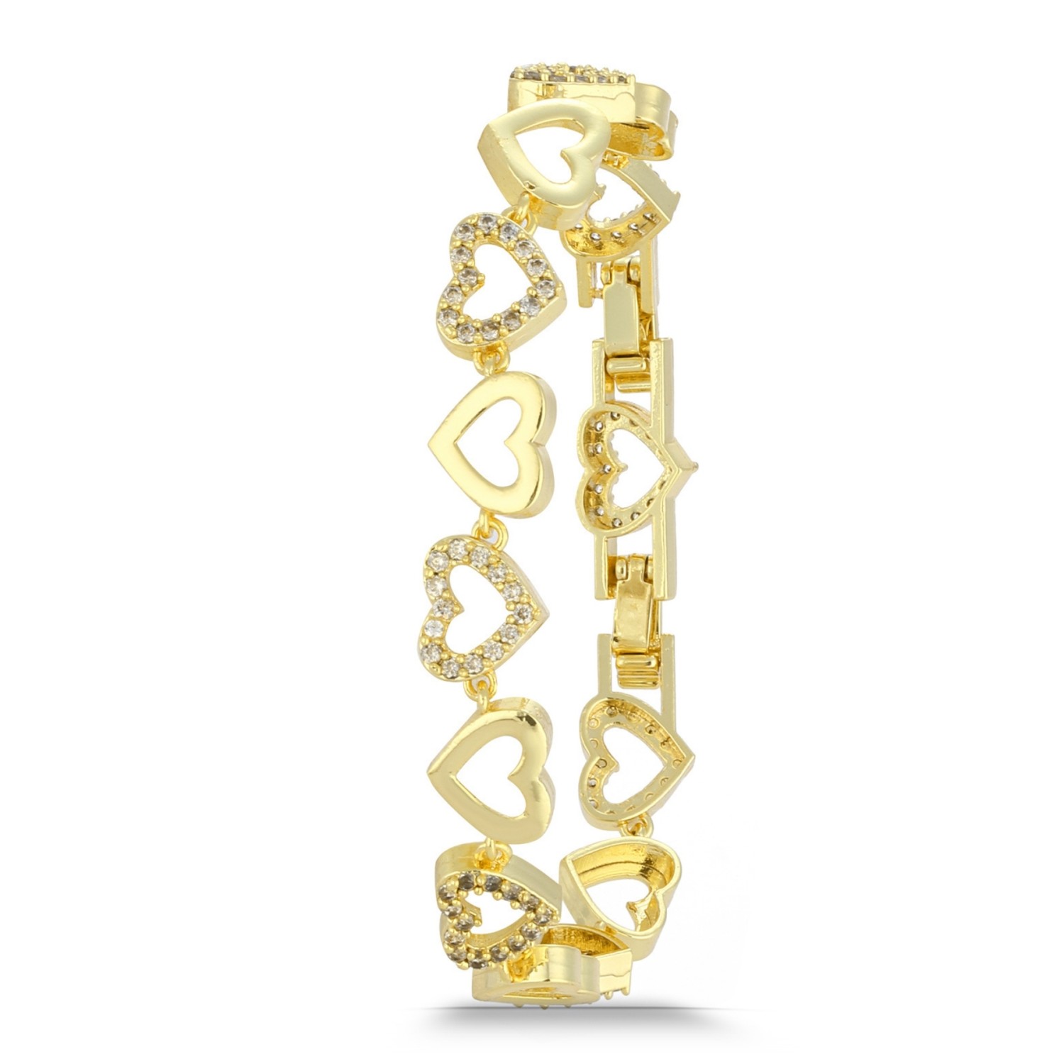 Forentina Altın Kaplama Beyaz Taşlı Kalpli Bileklik PS4190