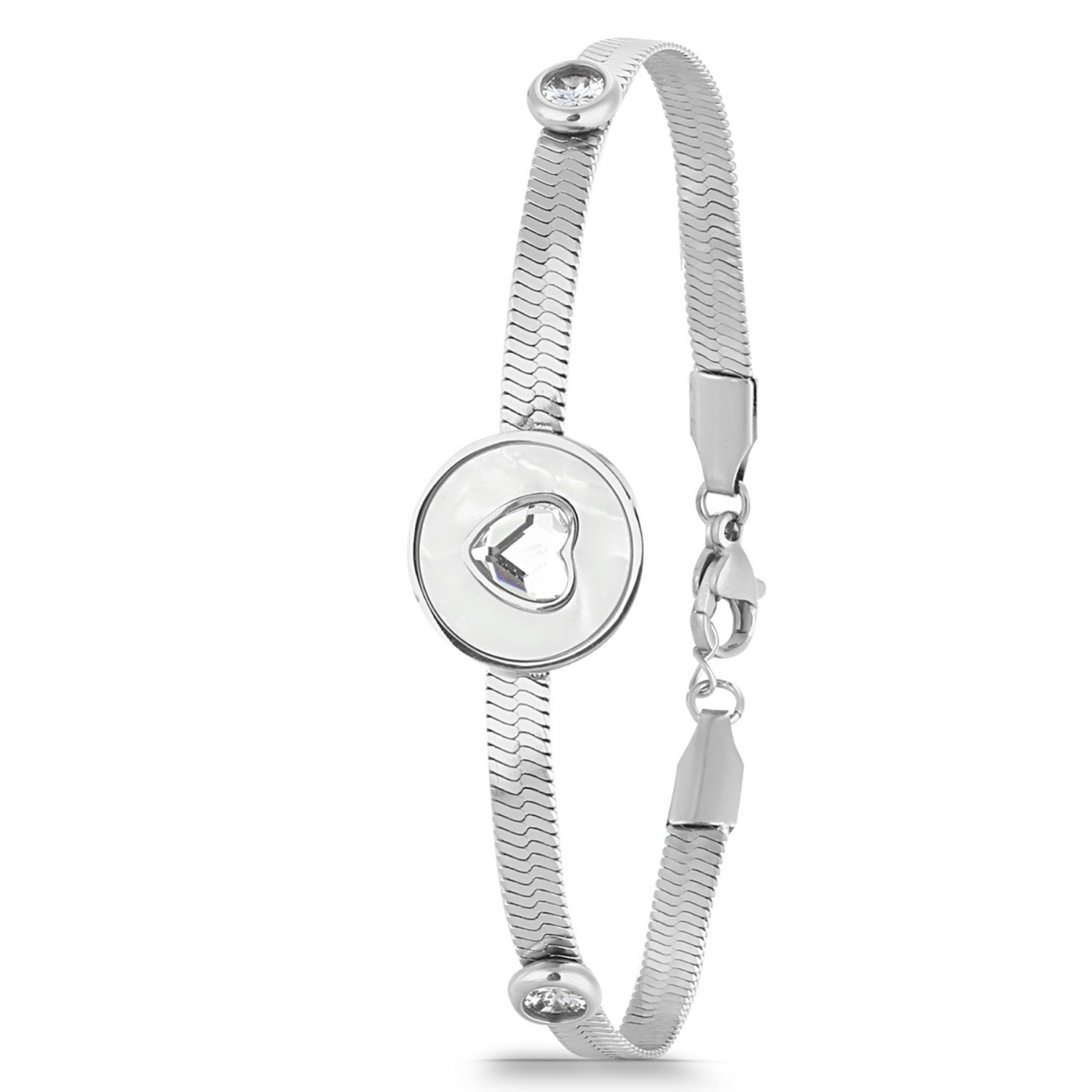 Forentina Gümüş Rengi Yılan Zincirli Mineli Kalp Bileklik PS4194