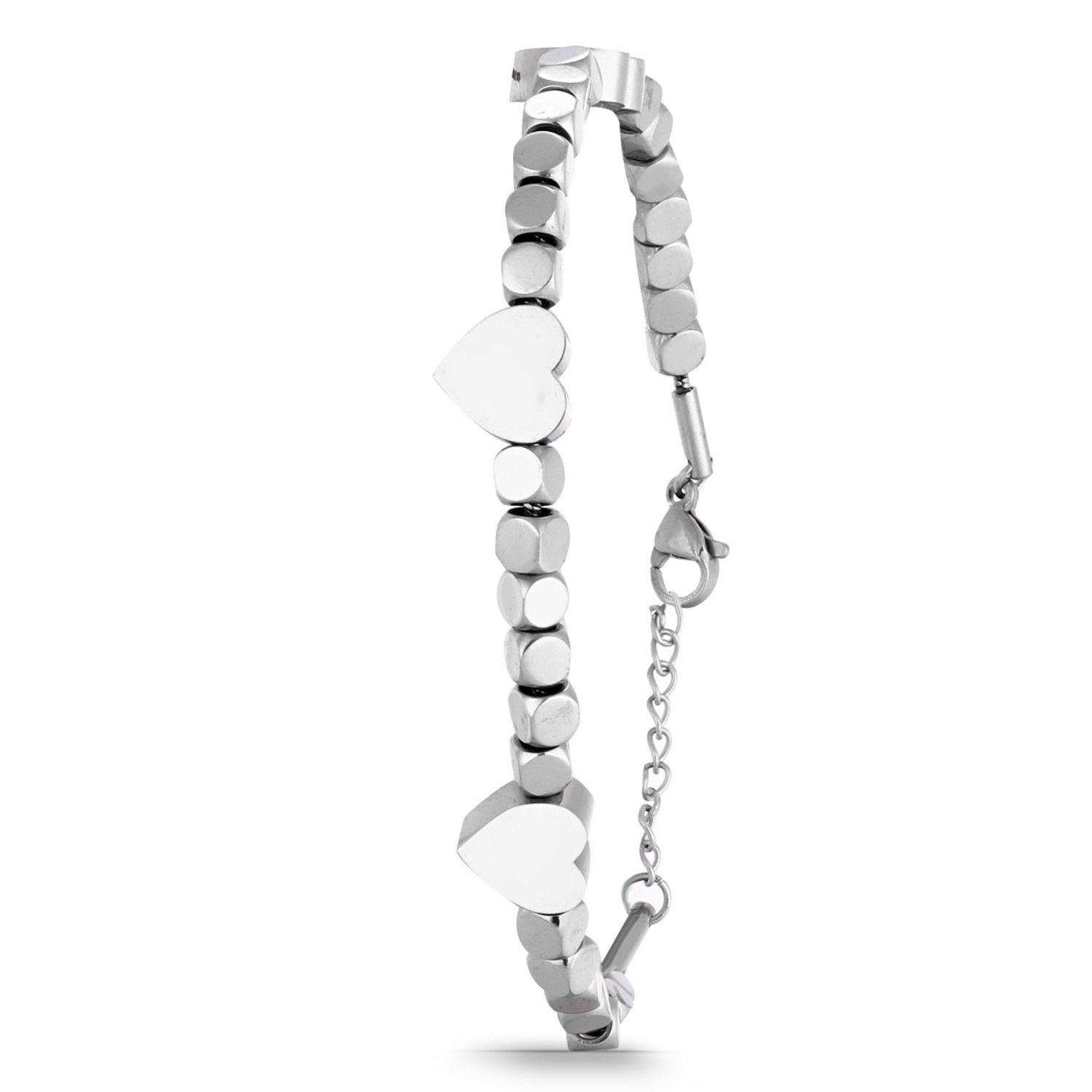 Forentina Gümüş Rengi Kobra Zincirli Kalpli Bayan Bileklik PS4195