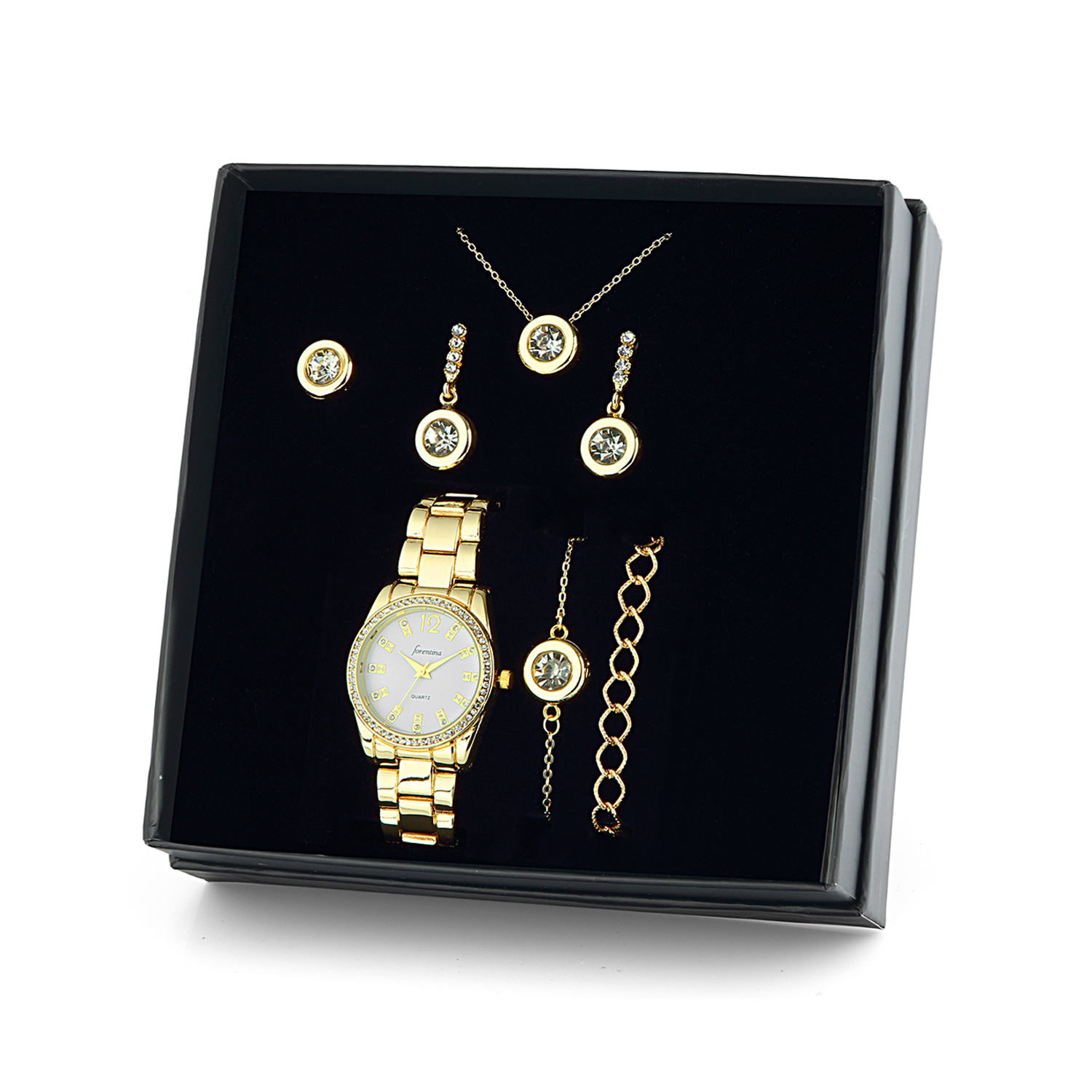 Forentina Altın Kaplama Tektaş Takı Set - Saat Hediye Set PS1680