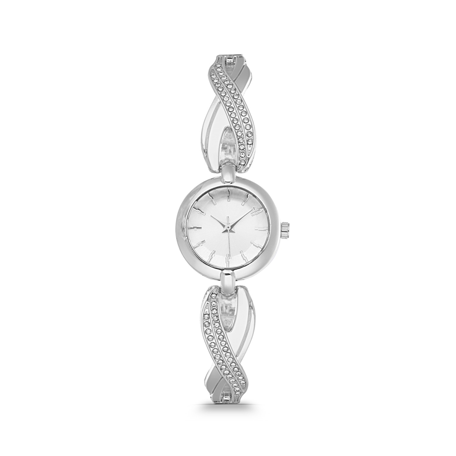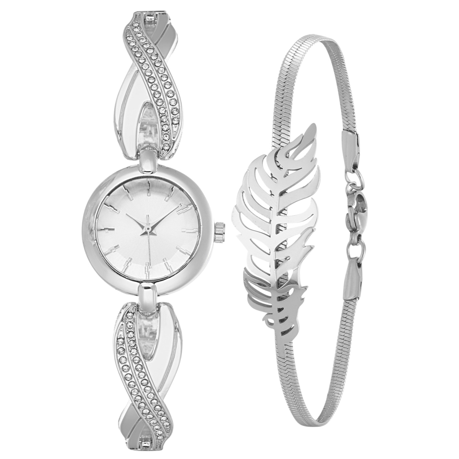 Forentina Taşlı Gri Bayan Kol Saati-Yılan Zincirli Yaprak Bileklik PS4120