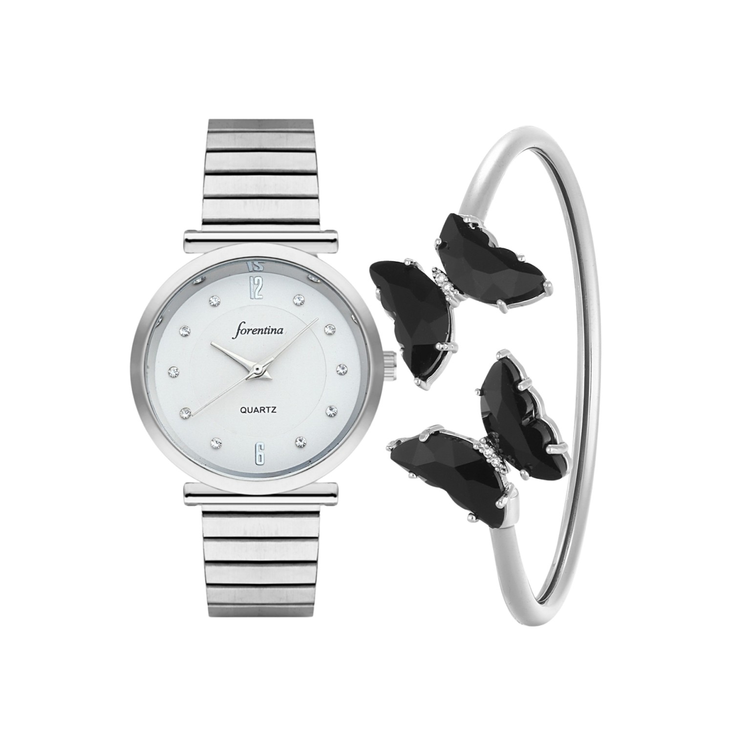 Forentina Metal Bayan Kol Saati-Siyah Kelebekli Kelepçe Bileklik PS4121
