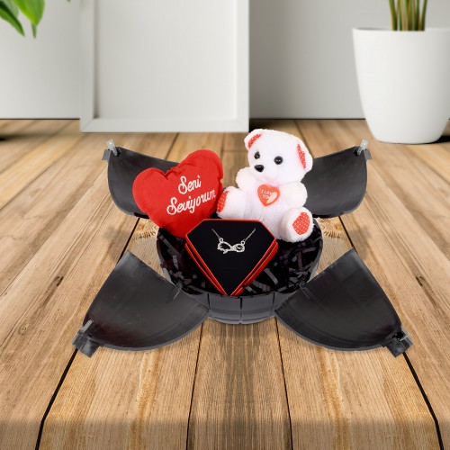 Seni Seviyorum Yastık ve Ayıcık ile birlikte özel bomba modeli kutusunda gönderilmektedir.