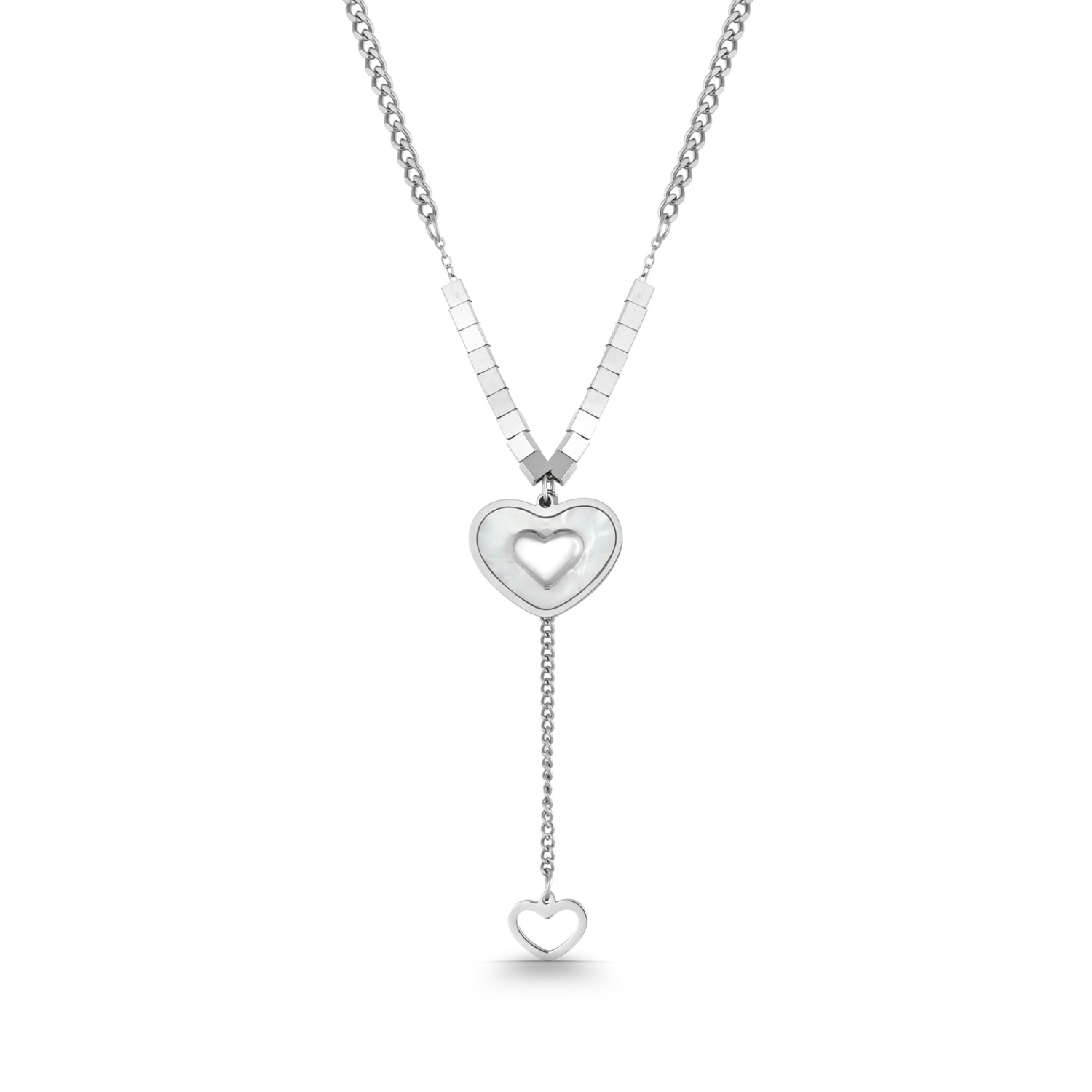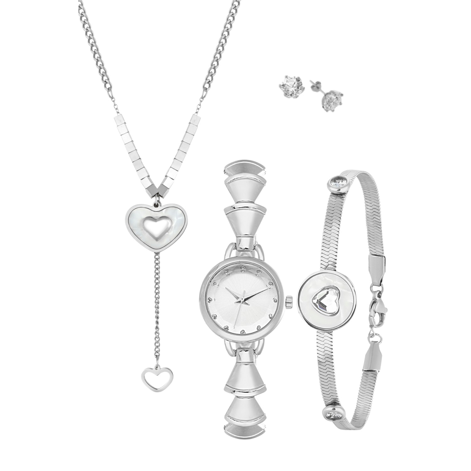 Forentina Gümüş Rengi Sallantılı Kalp Kolye Bileklik Tektaş Küpe Saat Kombin PS4113