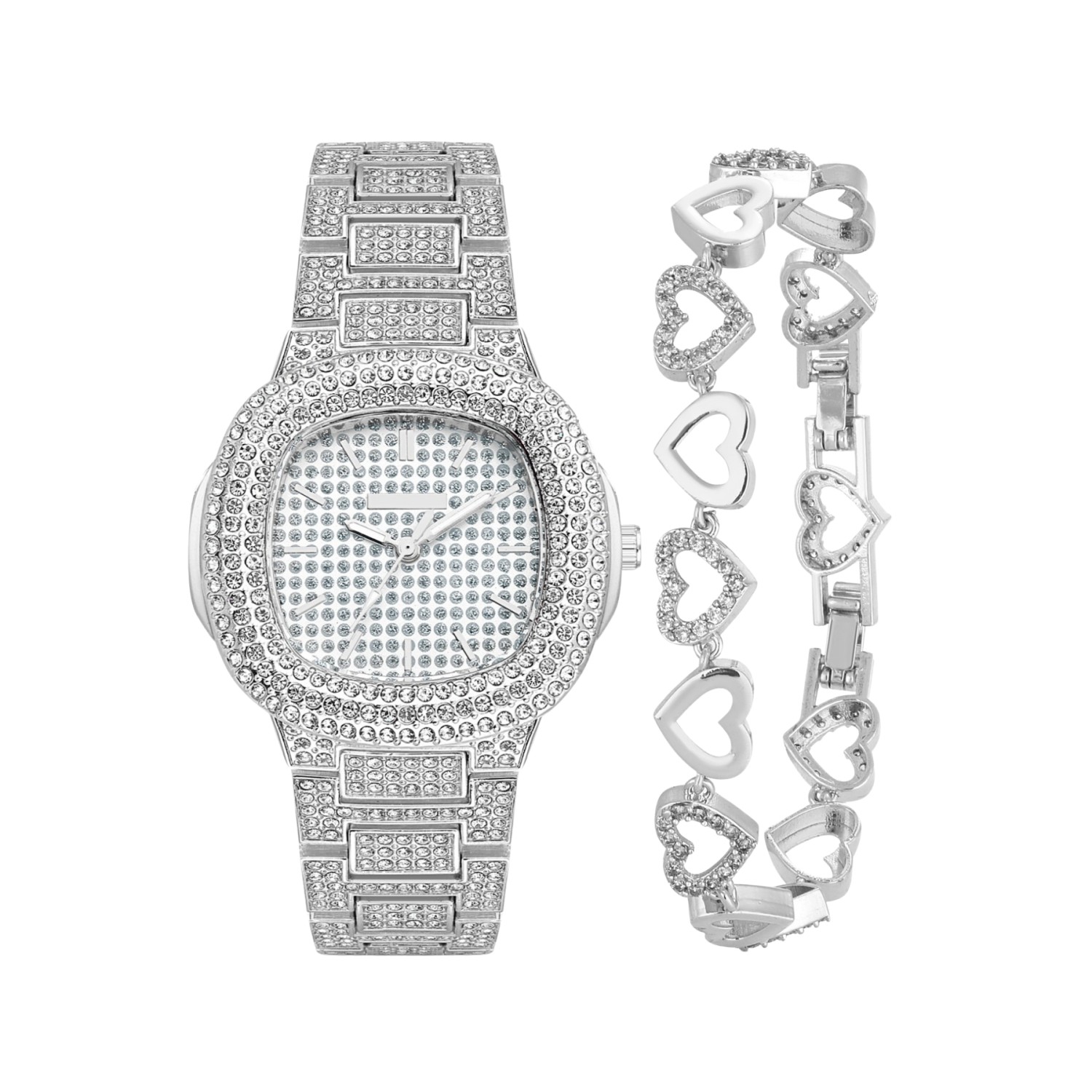 Forentina Gri Zirkon Taşlı Bayan Kol Saati-Taşlı Kalp Bileklik PS4137