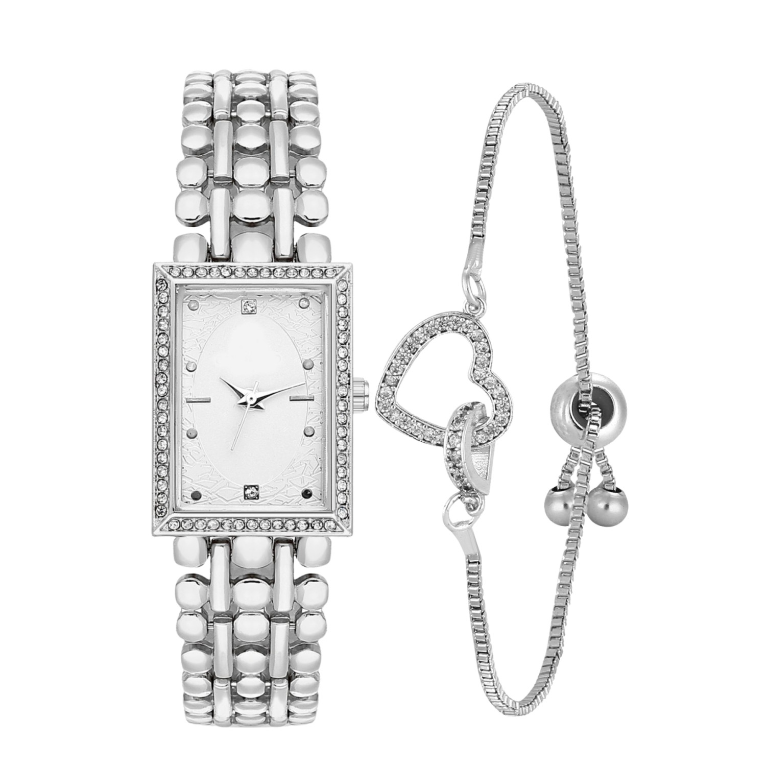 Forentina Bayan Gri Metal Kol Saati-Gri Kalpli Asansör Bileklik PS4141