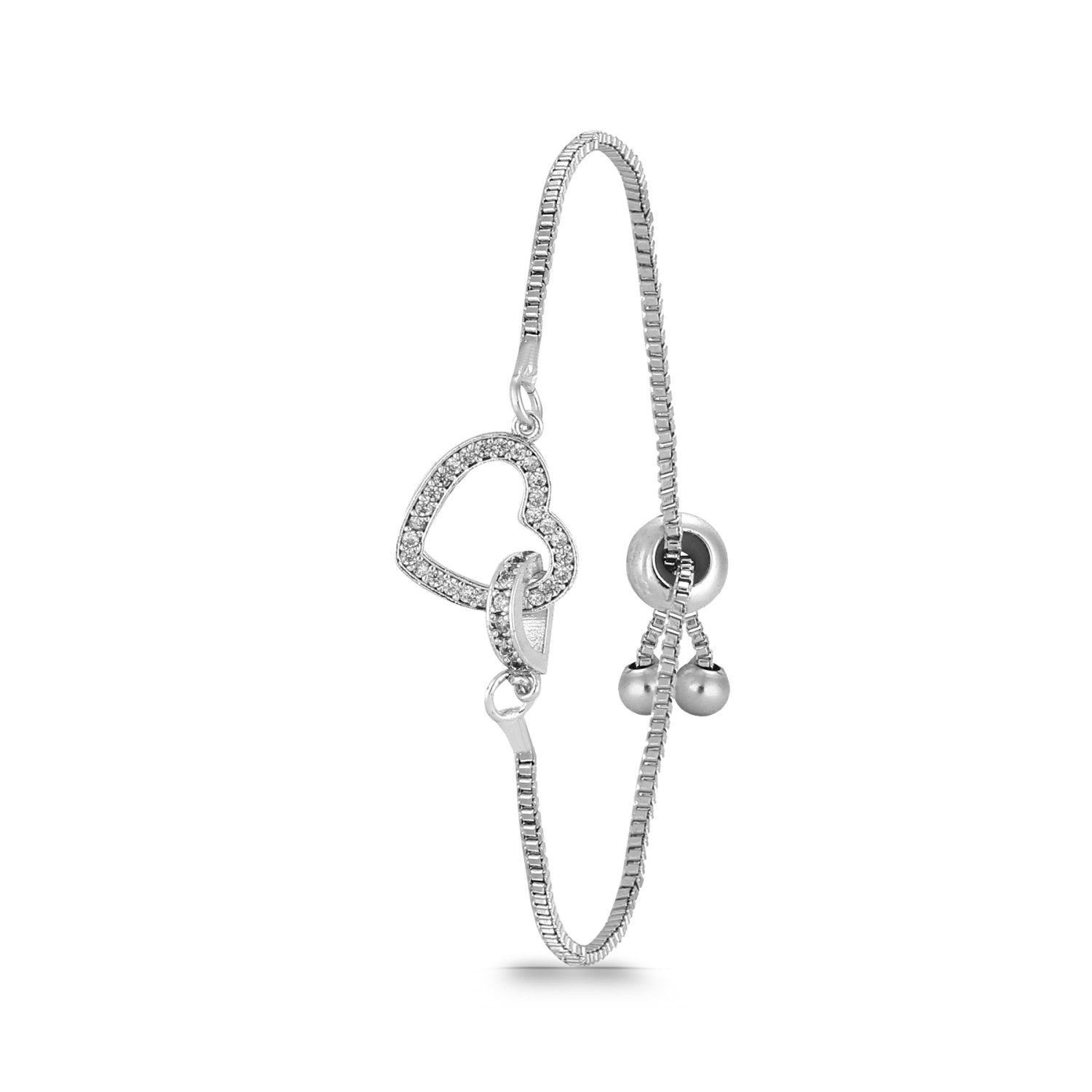 Bileklikler : Taşlı Kalpli Model Ayarlanabilir Asansör Bileklik