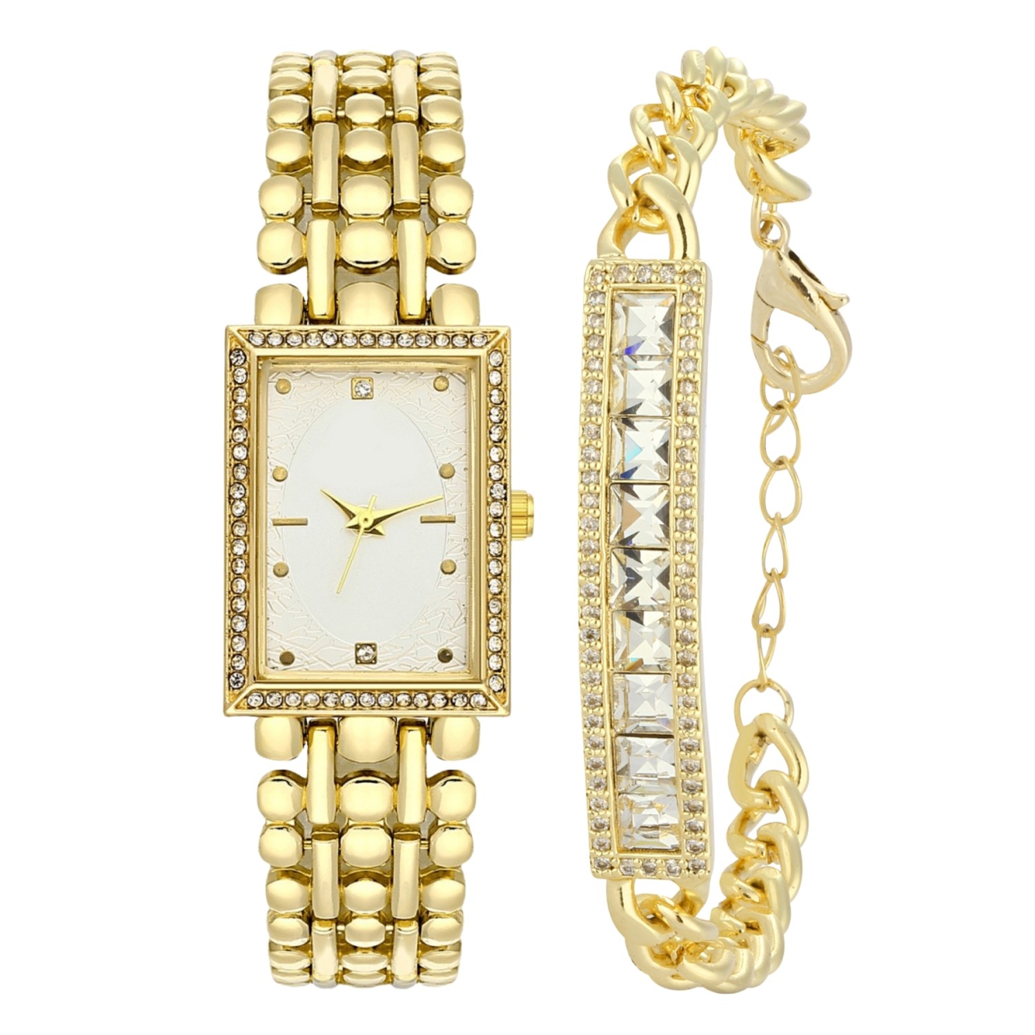 Forentina Bayan Metal Kol Saati-Taşlı Zincir Bileklik Kombin Set PS4142